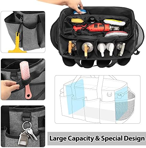 - Large Capaciousness: Car detail organizer with non-detachable sewn dividers; large-capacity main compartment, composed of 5 separate spaces and a small pocket, accommodates many detailing kits, like buffers, towels, polishers and 32 oz detail bottles