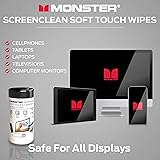 Monster ScreenClean Soft Touch Wipes, Screen Cleaner Wipes for Computer Screens, TV, Phones, Tablets, and Car Touch Screens, Home Office, 70 Count