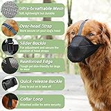 Soft Lightweight but Sturdy: Made of soft, lightweight and odorless materials, our mesh dog muzzle is extremely comfortable for dogs to wear. The mesh sides are foldable and soft but still resistant and long-lasting. In addition, it is very lightweight and highly packable - it can be folded and stored in a pocket easily Great comfy muzzle for ‘snackers’: This dog mouth cover is good for scavengers, it can prevent licking, a quick nip, scavenging or picking up sticks or bigger items. Since it is a soft dog muzzle, it isn’t appropriate for bite-risk dogs but can be great for public transport or in other situations when friendly dogs must wear a muzzle Optimum Starter for Muzzle Training: Our dog mesh muzzle is also a great starter muzzle for muzzle training, especially if one would cut a treat hole on the front. The soft material ensures that the humane muzzle will not rub or chafe, and its light weight makes it easier for gear-shy dogs to accept something on their face Humane Dog Muzzle: With ultra-breathable mesh, this dog mouth guard provides excellent ventilation for dogs to pant, and the mesh hole supports dogs to drink water. The feather-light weight is zero pressure for dogs to wear, this muzzle for medium sized dog is ideal for nail trimming, Vet visit and grooming Fully Adjustable and Secure: Both the neck strap and the forehead strap are adjustable. The slider is for securing the head strap, meanwhile you can thread the extra part of the neck strap through it. To help you secure the dog mussel on your dog’s head better, it also has a collar loop for wearing with the collar, making the fit more snug and secure on bigger sizes as well Hassle-available Service: Please measure before buying, the muzzle for medium sized dog (Snout circumference between 9¾"-10¾", snout length between 2¾"-3½") is suitable for Border Collie and so on. But NOT for short snout dogs such as Pitbull and Boxer. If you have any questions about our pet muzzle, please feel happy to tell us so we can help you solve the problem. Just buy with confidence Measuring Tips: We recommend checking your dog's actual measurements carefully, rather than choosing a size based on breed, weight, or previous size. Both the snout circumference and snout length should fall within the range shown on the size chart. You can find more tips on measuring and sizing on the PDP. Any questions please reach out to us Positive Training before Muzzling: It's normal for your dog to resist or try to remove the dog mouth cover at first. Use treats and rewards to introduce the mesh dog muzzle gradually and positively. With consistent positive reinforcement, your dog will adjust over time