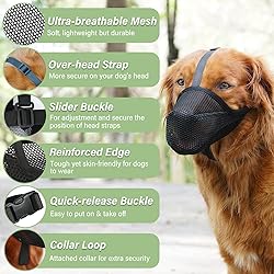- Mayerzon Dog Muzzle, Patented Soft Mesh Muzzle for Small Medium Large Dogs for Scavenging Biting Licking and Chewing, Allows to Pant and Drink (M, Black)