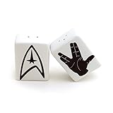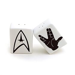 - Salt and Pepper shakers dare to go boldly to the Star ... fandom. Featuring the fleet logo and a hand sign, this set is a great way to wish someone lives long and prospers. These handmade shakers are made from stoneware clay, kiln fired several times to over 1900 degrees- safe to place in the dishwasher. They have a rubber stopper for easy filling. Each shaker measures 2.5 inches high x 2 x 1 (rectangular). One shaker has 3 holes, one has 2.