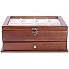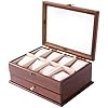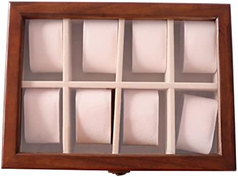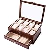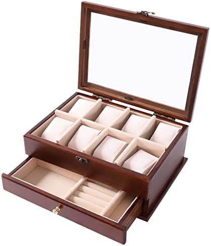 SHZICMY 8 Slot Wood Watch Box with Valet Drawer, Vintage Watch Case Display Organizer with Pillows, Soft Flocked Fabric Liner, 2-Tier Jewelry Organizer Watches Holder With Large Glass Top(Brown)