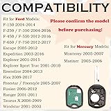 HIGH-QUALITY: Every Single Keyless Entry Remote Control Car Key Fob is Fully Pre-tested by Professional Locksmith Tools before Shipping. All Our Key Fobs are Pre-installed with Battery and Electronics. FIT FOR - 3 Button Key Fob Compatible With 2004-2014 2007-2015 Edge,2004-2014 F-150,2004-2016 F-250,2004-2016 F-350,2012-2016 F-450,2012-2016 F-550,2012-2017 F-650,2012-2017 F-750,2005-2012 Escape,2003-2016 Expedition,2001-2015 Explorer,2001-2010 Explorer Sport Trac,2004-2013 Econoline,2009-2017 Flex. FIT FOR - Keyless Entry Remote Control Key Fob Compatible With 2007-2015 Edge,2004-2014 F-150,2004-2016 F-250,2004-2016 F-350,2012-2016 F-450,2012-2016 F-550,2012-2017 F-650,2012-2017 F-750,2005-2012 Escape,2003-2016 Expedition,2001-2015 Explorer,2001-2010 Explorer Sport Trac,2004-2013 Econoline,2009-2017 Flex,Fit for Mercury 2005-2007 Monterey,2005-2006 Mariner. REPLACEMENT: This Keyless Entry Remote Control Car Key Fob Replacement Is Compatible with Part Numbers: 164-R8070, 850K-D600022, 5912560 164-r8073. Compatible with FCC ID CWTWB1U793 / OUC6000022. Please Check Our Product Description and Vehicle Fitment Tool for Full Compatible Vehicles List. PROGRAMMING: Self-Programming of Keys Requires That You Have 2 Working Keys. And Self-Programming Instructions Link Will Be Provided with Every Order. Uncut Key Blade Needs to Be Cut by Local Locksmith or Hardware Shop. PACKING LIST: 1 X Keyless Entry Remote Control Head Key Fob with Electronics and Battery Pre-Installed. Ready to Program.