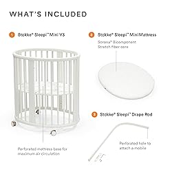 WHAT’S INCLUDED - The Stokke Sleepi Mini Bundle includes an adjustable bed, a mattress, and a drape rod to help create a nest-like environment for your child. Suitable for ages 0-5 years. COMFORT & SUPPORT - The Sleepi Mini Mattress is made with layers of breathable 3D mesh and a Sorona Bicomponent Stretch fiber core to offer firmness & maximal airflow for safe sleep. SAFETY - For optimal safety & comfort, it's important that a baby mattress is breathable. This ensures that air can circulate and remove carbon dioxide exhaled by the baby, which is especially important when the little one sleeps on their stomach. DECORATE YOUR NURSERY - The Sleepi Drape Rod is perfect for hanging the Sleepi Canopy (not included) over your baby's crib. Mobiles can also be hung off the end for your baby's enjoyment. GROWS WITH BABY - The adjustable Sleepi Mini expands to accommodate the changing needs & sizes of a growing child. Use the Sleepi Bed Extension (not included) to transform the crib into a baby and toddler bed. DESIGN WITH A PURPOSE - Stokke entered the children's furniture & accessories sector in 1972, and since then, all our products have been designed to challenge the ordinary, foster healthy development, and nurture family bonding.