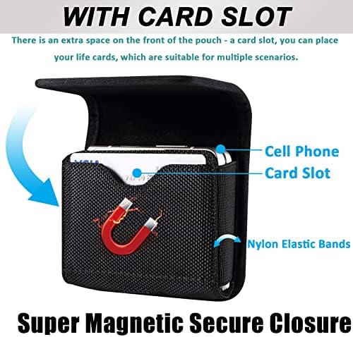 Miimall for Samsung Galaxy Z Flip 7 6 5 4 Holster, Nylon Phone Pouch Belt Clip Waist Pouch for Samsung Galaxy Z Flip 7/6/5/4/3, Motorola RAZR 2025 5G Holster with Card Slot Black