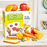 - Language Builder 3D - 2D Matching Kits provide the manipulative and photo materials for the most common introductory ABA and Autism Education lesson - matching. The 4 box set of Animals, Foods, Vehicles and Everyday Objects Matching Kits contains 16 animals, 16 Foods, 16 Vehicles and 16 Everyday Objects and 64 matching photo cards: o 2 each of 8 different realistic plastic figurines: Lions, Giraffes, Cows, Horses, Pigs, Dogs, Cats, Birds, Apples, Cookies, Oranges, Bananas, Broccoli, Carrots, Corn, Bread, Cars, Busses, Airplanes, Helicopters, Firetrucks, Tractors, Boats, Motorcycles, Beds, Chairs, Bowls, Cups, Spoons, Flowers, Balls and Shoes. o duplicate cards to correspond with each plastic toy figurines for matching The cats, birds, apples, cookies, chairs, cups and flowers were chosen specifically to compliment the similar matching pictures in the Basic Stages section of the Language Builder Picture Noun Cards, so you can move seamlessly to similar matching, sorting and categorization lessons. The Cups, Bowls and Spoons were chosen specifically because they are nesting items for autism education which can be stacked easily with one inside or on top the other. 3D Matching in ABA therapy for Autism always starts with nesting objects. Early language acquisition begins with the ability to understand objects as distinct and separate. Before learning that pictures represent real items (picture-object correspondence), children learn to match actual physical objects. This is a regular part of developmentally healthy play. Next, when children master the skill of matching a 3D object to a 2D image, they understand that a 2D image can represent an actual object. Now you can use pictures to teach a variety of new language and functional skills! Language Builder 3D-2D matching kits provide the tools so you can help children meet these critical language development milestones. The cards and the box are kid friendly, but not juvenile, making the Language Builder Series perfect for toddlers as well as for adult learning. ESL, Adults learning English or another foreign language, or Adults with Autism, Aspergers, Alzheimers, aphasia, or those who need rehabilitation from stroke will not feel awkward using these cards. The Language Builder 3D-2D matching kits are durable and adaptable with a sturdy work-from box.