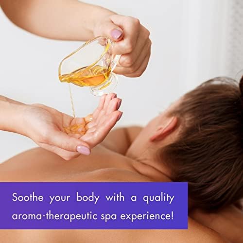 - Terapéutico y de rápida absorción: nuestro aceite de masaje es una mezcla de aceites botánicos de rápida absorción y multitarea para calmar y reconfortar los sentidos a la vez que hidrata la piel de pies a cabeza. Este aceite ayuda al proceso de relajación y se puede usar en la espalda, las piernas, los pies, los brazos y las manos para disfrutar de una relajante experiencia de spa.