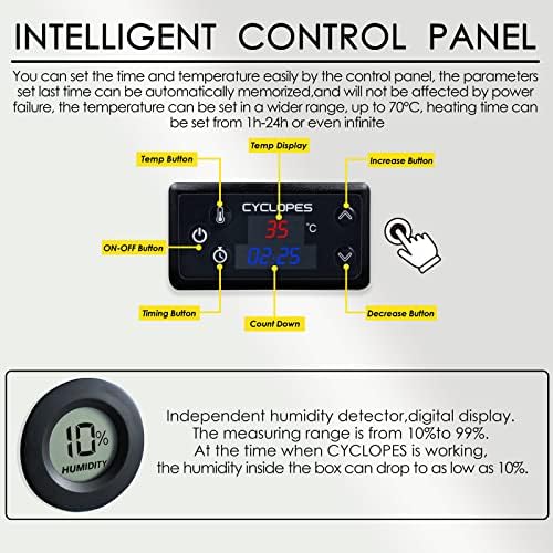 - 【LOW NOISE & CUSTOMER SERVICE】eibos cyclopes has upgraded its PCB board with the newest relay for better performance, aimed at minimizing any noise while the dryer operating, NO clicks on and off sound at all, the batch from Nov 2023 applies. ❤️🔥The dryer is designed to reduce humidity levels to 10%, if the humidity indicator does not display accurately, please contact us for Humidity Sensor Support❤️🔥Besides, 1-Year After-Sales Guarantee offered for your peace of mind