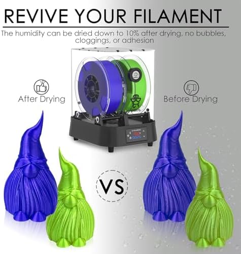 - 【RESTORE YOUR BRITTLE FILAMENT】keep your old left out brittle filament before having our filament dryer, Cyclopes will help drying and restoring the spools, even make them better than the brand new unit, impeccable prints are the result. No adhesion, cloggings, bubbles, or any plastic strings. Easy to use, no need extra set up