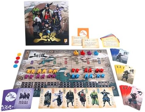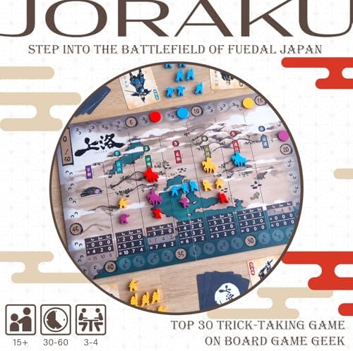 Joraku Deluxe — por Moaideas Game Design | Estrategia y Tácticas en el Japón Feudal | Incluye 40 Peones de Samurai de Madera | Combinación de Toma de Cartas y Control de Área | 2-4 Jugadores | 20-40 Minutos