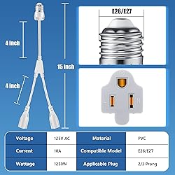 [Get Power Easier]: This light bulb socket adapter is compatible with 2 and 3 prongs, just take 2 seconds to screw it into the E26/E27 light socket to power 2 and 3 prongs appliances. [Using Way at Ease]: Configured with an 8 inch extension cord, the light bulb outlet socket adapter is more freedom of angle options than the wireless adapter, and can be powerful even in narrow spaces. [Make Electricity Safer]: We dedicated to provide high safety level products. Our light socket adapter is made of PVC flame retardant material. [Quality and Reliable]: This light socket to plug adapter is made of quality plated screw head, which is not only more resistant to corrosion and rust compared to other adapters, the connection is also more stable, tested 3000 times without loosening, and not easy to fall off during your use.