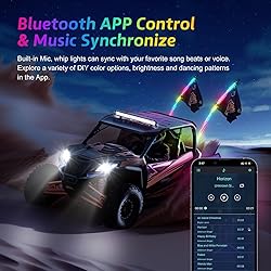 - Ehaho 4FT Whip Lights with Spring Base,LED Whip Light with App & Remote Control, Spiral RGB Chasing Lighted Antenna Whips, Music Whip Light for UTV ATV RZR Can-Am SXS Polaris Offroad Truck(2 Pcs)