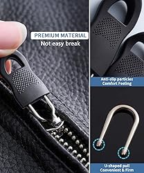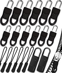 【Quality Material】20 pcs zipper pulls---Our rubber zipper pull is made of high quality material TPU, U-shaped zipper pull are flexible and durable, metal zipper handle is made of zinc alloy and steel spring; the zipper tag cord pulls are made of PVC material and durable nylon cord; 52 pcs zipper repair kit---Replacement zipper made of premium and durable metal, with excellent plating processing, durable and never fade, stylish and can last for a long time. 【Great Value Package】No need to worry about damaged zippers! 12 pcs soft rubber zipper pull, 6 pcs black zipper pull cords, 2 pcs premium metal zipper pull tab(3 styles and 4 sizes). 3 x black nylon replacement zippers, 3 x black plastic replacement zippers, 3 x silver metal replacement zippers, 3 x bronze metal replacement zippers, 24 x black top zipper stops, 16 x black bottom zipper stop. 【Wide Compatibility】Ideal for replacing missing or broken zipper pull, such as backpacks, jackets, bags, coats, down coat etc., the zipper pulls is great for lengthening existing zippers to make them easier to grasp. 52 pcs Zipper repair kit works on the most common zipper such as split zipper tracks, broken sliders, broken zipper pull and missing zipper teeth for jeans, pants, coats, and more, you'll love the ability to fix your own clothes with ease, and without a costly trip to the tailor! 【Easy to Install】20 pcs zipper pull---Replacement in just seconds without using tools. The U-shaped ring at the top can open and close the zipper head, which is reusable. 52 pcs zipper repair kit---With the help of the plier, you can fix zipper issues by yourself. Fix zipper kit fixes any #5 zipper(Nylon, Plastic, Metal) in a flash. Saves you time and money, and makes it work like new! 【Practical Zipper Pull Repair Kits】Multiple choices to meet different needs. Most problems can be solved with these 2 zipper repair and replacement kits. No need to go to a tailor shop and spend a lot of money on repairs. If you are interested in DIY, this is also a good choice.