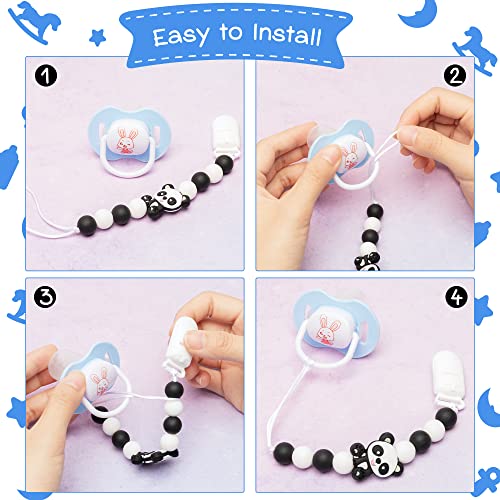- Lovely Design:Package included 1pc black panda pacifier clip , 1pc green dinosaur pacifier clip, 1pc gray elephant pacifier clip, 1pc blue raccoon pacifier clip.Different styles of pacifier clips can meet your baby's different preferences. The rope allows you to replace the pacifier clip anytime and anywhere.