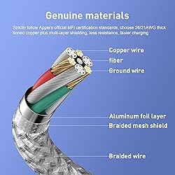 - 【Apple MFi Certification】(1) MenoSupp Apple MFi certified USB to Lightning cable, made with smart chip.The iphone charging cable uses the latest MFI C94 lightning end, designed for fast power supply, which can charge your phone fast.(2) It also supports up to 480Mbps data transfer speed to easily transfer music, photos and files between iPhone and Macbook in seconds(3) Nylon braided nylon insulation and precision layered welded connectors make the cable more durable, stronger and tangle-free than regular iPhone charger cables【Wide Compatibility & Support CarPlay】:iPhone 13/13 Pro/13 Pro Max/13 Mini12/12 Pro/12 Pro Max/12 Mini11/11 Pro/11 Pro Max/ XS/ Max/XS/XR/X/8 Plus/8iPhone 7 Plus/7/6 Plus/ 6/6S Plus/6S etc.! Note: You will need a USB-C port wall charger for fast charging. 18W+ USB-C power adapter included【High Quality, High Service】: If you have any questions, please feel free to contact us. Our service team will provide you with a satisfactory solution within 24 hours.