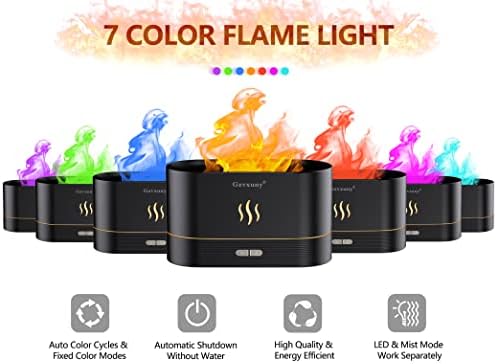 Flame Essential Oil Diffuser, Upgrade 7 Colour Lights Aromatherapy Diffuser, Super Quiet Air Humidifier, Electric Aroma Diffuser, Waterless Auto-Off for Home Office Room - Black
