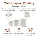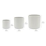 Set of 3 ceramic planters with 6, 8, and 10-inch diameters. Perfect for planting succulents, herbs, flowers, house plants, and more. Sleek and modern white fluted appearance. Ideal for both indoor or outdoor use. Includes drainage hole and rubber plugs for proper plant maintenance.