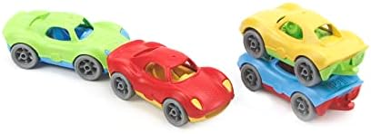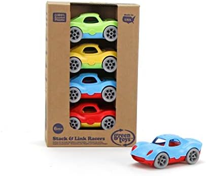 Start your engines! The Green™ Stack & Link Racers are ready to roll! These pocket-sized cars are the perfect size babies and toddlers, but are filled with fun for any age. The unique design allows for the cars to be used individually, linked together in a chain, or stacked up to form a tower. Each pint-sized car sports unique texture detailing for tactile stimulation, while the whole fleet features a super-eco design with no metal axles or external coatings. Made in the USA from 100% recycled plastic with no BPA, phthalates, or PVC. Dishwasher safe.