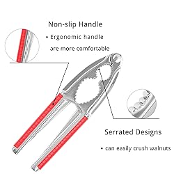 Nut Crackers Walnut Cracker Heavy Duty Shell Cracker Seafood Cracker Walnut Opener Tool with with Red Non-slip Handle, with 2 Pcs Forks/Picks