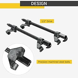 The heavy duty strut spring compression tool is ideal for removal and installation of auto and truck coil spring and struts. Strong steel jaws securely hooks into coils use. The coil spring compressor tool is built with heat treated and high quality steel to ensure you obtain professional job performance for a professional mechanic and automotive repair. This internal coil spring compressor works well with uncompressed springs length up to 15"; Maximum jaw opening 14". Ideal strut compression or spring tool for strut services. Our coil spring compressor internal has spring compressor clamps ideal for removal and installation of automotive coil spring and struts, durable and smooth compression of springs, suitable for cars with coil springs. 1/2 Drive & 14" Maximum Jaw Opening. Set Of 2 Coil Spring Shock Compressor Remover/Installer.