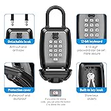【La𝗿𝗴𝗲 Ca𝗽a𝗰𝗶𝘁𝘆】The upgrade extra large key lock box is with External size:4.53 x 3.35 x 2.17 IN (H x W x D). Internal size: 4.33 x 3.15 x 1.18 IN (H x W x D), which provide ample, highly secure internal storage for your valuables. The Key Safe box outdoor can hold 5-8 medium sized house keys, access cards, car keys and other small items. With this secure key lockbox, there is no need to worry about your keys hidden under the carpet being discovered. 【H𝗶𝗴𝗵 S𝗲𝗰𝘂𝗿𝗶𝘁𝘆】This wall mount key lock box push button is made with a new upgraded 12-digit button, the 9-digit key combination is more secure and harder to crack than the traditional 4-digit combination. Furthermore, it gives you the option to reset the combination at any time. The key lock box is made from a high strength zinc alloy body and hardened steel shackles to keep your keys safe. 【M𝗼𝗿𝗲 R𝗲𝗹𝗶a𝗯𝗹𝗲】The locklox for house keys is made of heavy-duty PVC, aluminum alloy and steel locking mechanism, which offers extra resistance for the key box wall mounted to hammering, sawing and prying. 【Ea𝘀𝘆 T𝗼 𝐈nstall】This 12 digit combination lockbox comes with a removable shackle, you can securely hang this lock box on doorknob, fence or anywhere you like. Very useful for attaching the button combination lock box to a door, doorknob, gate, fence, stairs, shelf etc. 【W𝗶𝗱𝗲 A𝗽𝗽𝗹𝗶𝗰a𝘁𝗶𝗼𝗻】It’s a great value key lockbox with code for indoor and outdoor use, suitable for storage of keys, cards and jewelry, especially fit for fitness enthusiasts, travel enthusiasts, Airbnb and home rental host, care takers, home workers, roommates, ideal to share access to families and roommates. This high security lock box will be a wonderful gift for your family or friends. 【𝙉𝙤𝙩𝙚】Default no combo,do not forget your password, or you have no way to open the key box.