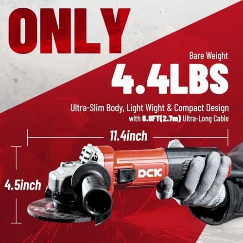 - 9.0 Amp Motor & 11,800 RPM Higher Speed - The DCK angle grinder with a maximum output power of 1100W, up to 11,800 RPM speed makes it suitable for metal workers, plumbers, and professionals who rely on grinders regularly.