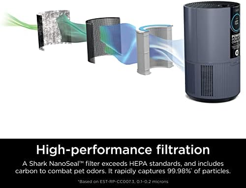 Shark HP102PETPR Clean Sense Air Purifier for Home, Allergies, Pet Hair, HEPA Filter, 500 Sq Ft Small Room, Bedroom, Captures 99.98% of Particles, Pet Dander, Fur, Allergens & Odor, Portable, Imperial