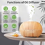 Essential Oil Diffuser Humidifier for Home: 400ml Aromatherapy Air Diffusers for Large Room - Electric Ultrasonic Aroma Vaporizer for Bedroom - Cool Mist Humidifiers with LED Light & Timers