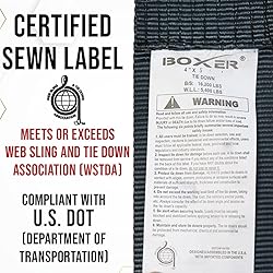 [SPECIFICATIONS] 4 inch wide by 5 feet long winch straps, with a large flat hook on one end. Breaking strength of 16,200 pounds and a working load limit of 5,400 pounds. Assembled and inspected in USA. [EXTRA LARGE FLAT HOOK] Extra Large Flat Hooks provide added strength to the overall strap. Construction made to be durable and secure for all your tie down needs. Hooks are heat treated and coated in black for longevity and corrosion resistance. [4” STRAP] Using premium black polyester straps to ensure security and safety when strapping down your container. 5 feet in length so you will not have excess straps floating around. [RECOMMENDED USE] Used on trucks that roll on/off containers. Securing your container safely with Boxer Tool Straps, which are assembled in the USA. [DOT/CHP RATED] Following all standards to ensure safety and security on the road. Meeting all WTSDA safety standards with a sewn in label.