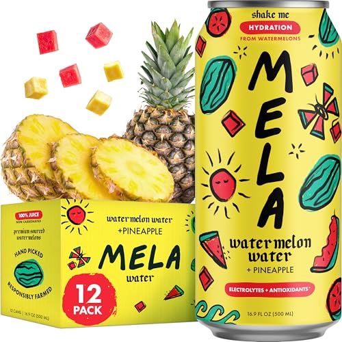 Mela Watermelon Water - Watermelon Juice, 100 Percent Natural Fruit Juice with Vitamin C, Electrolytes, Antioxidants - Coconut Water Alternative, Gluten-Free (Pineapple, 16.9 fl oz, 12-pack)