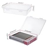Plastic Craft Storage Box: Measures by 9.1"x6.7"x2"/ 23x17x5cm(LxWxH); and interior size is 8.7"x6.1"x1.8"/ 22x15.5x4.5cm(LxWxH). This size is just right for A5 notebooks, can hold lots of pencils, pens and markers. There are three sizes for you to choose from. Clear & Stackable: The sewing box organizer adopts a transparent design, and the visual construction allows you to easily identify the content without opening the box, so that you can see what you want at a glance, saving time and effort. Non slip bottom and top lid groove make the plastic storage containers easy to stack. It can also be placed vertically on the desktop, help you save more space. Multipurpose Art Supply Organizer: This clear plastic craft organizer can be used not only to store small stationery, but also to store sewing supplies such as beads, bobbins, staples and so on. Special as stationery box, sewing box, cosmetic container and office supplies orgainzer. Can be use in drawers, office, bedroom and any other occasion at your will. Upgraded Design: 1. The plastic boxes are made of high-quality PP plastic, which are sturdy and durable. The surface is smooth without burrs and not easy to scratch hands. 2. Plastic case with dual snap-shut latches can close tightly to protect items from falling out. 3. Flap lid design, which is waterproof and dustproof, makes it more easy to access. Keep Item Organized: Very suitable to organize craft materials, building block pieces, small toys and so much more in the office or at home. These organizer boxes with lid can help you tidy up and store things at home, so you don't have to be upset about organizing craft accessaries things.