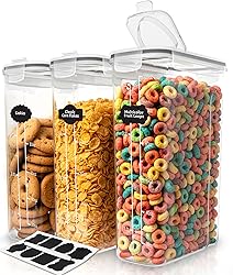 - Set of Cereal Containers – The set includes high-quality cereal containers along with plain stickers and a white chalkboard marker for ease of labeling.