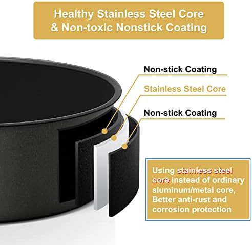 - 【HEALTHY STAINLESS STEEL CORE】Constructed by food-grade stainless steel core instead of traditional aluminum/metal core, Not only strengthen rust and corrosion resistant, But also avoid toxic substance releasing to your cakes in the heat, Healthier alternative to aluminum/metallic cake pan