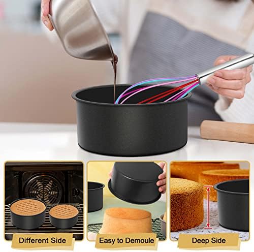 - 【3 DIFFERENT SIZES WITH DEEP SIDE】3-Piece cake pans measures 4 x 2, 6 x 3 and 8 x 3 inches, Difference in size can meet toaster oven/air fryer/instant pot different demands, 3 Inch deep side provide taller and larger capacity, Allow cake to grow much higher and no worry of overflow