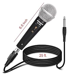 EXCEPTIONAL VOCAL CLARITY: The Berlingtone dynamic microphone features a cardioid pickup pattern, effectively isolating the main sound source while minimizing background noise and feedback for clear and crisp vocal reproduction. DYNAMIC PERFORMANCE: Designed for optimal clarity and punch, this microphone boasts a robust construction, ensuring high gain before feedback. Ideal for live vocal performances, public speaking, podcasts, and recording sessions. Updated industrial design with black metallic finish and grille featuring classic silver ball grille Metal Casing WIDE FREQUENCY RESPONSE: Experience brilliant and transparent sound with the Amazon Basics dynamic microphone. Equipped with a built-in spherical wind and pop filter, it effectively minimizes breath and pop noises, making it perfect for various applications. Cardioid pick up pattern and built-in spherical wind and pop filter for separating background noise and delivering clear sound DURABLE CONSTRUCTION: Crafted with a zinc die-cast housing and steel mesh head, this microphone offers maximum reliability and longevity, making it suitable for everyday or occasional use in any setting. Great for everyday or occasional use such as live musical performances, public speaking, podcasts, recording sessions and more EASY SETUP AND USE: Dynamic microphone comes with a single male XLR cable and a simple on/off switch, ensuring hassle-free connectivity and operation for beginners and professionals alike.with included single 25 male XLR cable