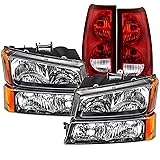 Headlight Tail Lights Assembly Combo Compatible with 03-06 Chevy Silverado Avalanche 1500 2500 3500 1500 HD 2500 HD,07 Chevy Silverado Classic Headlamp Rear Brake Lights, Driver and Passenger Side