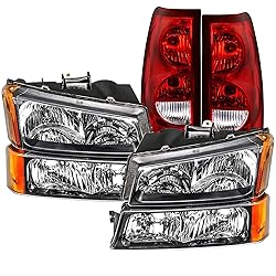 APSVE Headlights Assembly + Rear Tail Lights for 2003-2006 Chevy Silverado, 2007 Chevy Silverado Classic.Update the look of your vehicle while improving your visibility with little to no modification; Helps to reduce traffic accidents cause by bad weather or adverse road condition. Ensuring driver's safety. 【Compatibility】: 2003 2004 2005 2006 Chevy Silverado 1500 2500 1500HD 2500HD 3500, 2007 Chevy Silverado 1500 / 2500 / 3500 Classic. 【Attention】: Headlights Only Fit Models without Factory Cladding ONLY 【Headlight】 OEM Part Number: 15199556,15199557,10366037,10366038 ; Partslink Number: GM2520185, GM2521185, GM2502224, GM2503224 【Rear taillights】 OEM Part Number: 19169017, 19169018, 19169004, 19169005 ; Partslink Number: GM2800174, GM2801174, GM2800186, GM2801186 【DOT Compliance and safe Driving】: To ensure driving safety for you and the oncoming driving circumstance are DOT & SAE compliant. Our headlights provides clearer and further vision to see the obstacles at night. Reduce the possibility of danger 【Simple Installation】: Plug-and-play operation, direct bolt-on OE fitment and replacement for the stock lights, easily for installation without any drilling or modification