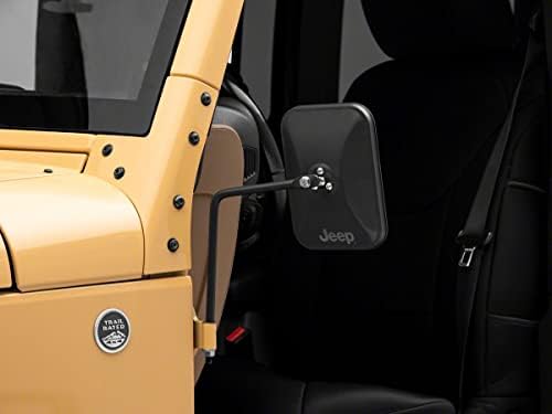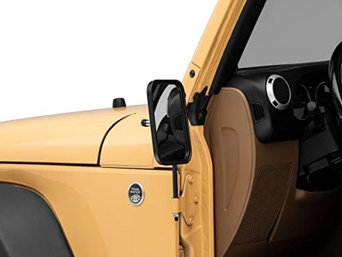 Adventurous Styling. A set of Officially Licensed Rectangular Adventure Mirrors will give your JK the rugged good looks of an adventurous off-road vehicle. These Rectangular Adventure Mirrors not only look great, but they will also improve your range of rear visibility on both the street and the trail. Finished in a textured black finish, each Mirror features the logo expertly engraved on the back for extra visual appeal and a distinctively bolder look.Stay Street Legal. If you're like most enthusiasts, you love taking the doors off your Wrangler in warm weather, but in doing so you lose your factory mirrors. Installing a pair of Officially Licensed Rectangular Adventure Mirrors will keep you street legal as these mirrors can be installed with your doors removed.Superior Quality. These Rectangular Adventure Mirrors are manufactured with heavy-duty steel round bar and plastic housings to ensure durability and reliable performance on and off-road. The steel bars are then complete in a textured black, powder-coat finish for aggressive good looks and long-lasting corrosion resistance.Officially Licensed Product. These Adventure Mirrors feature an officially-licensed logo engraved on the back side for impressive styling. With these Mirrors being officially licensed, you can be assured that it is only of the highest quality.Easy, Bolt-on Installation. These Rectangular Adventure Mirrors are designed to install simply in the upper door hinge of your Wrangler using just basic hand tools. There is no drilling or cutting required for a clean, straight forward installation that can be completed in about 30 minutes.Application. These Officially Licensed Rectangular Adventure Mirrors with Engraved Logo; Textured Black are compatible with 1966-2018 Wrangler CJ5, CJ7, YJ, TJ and JK