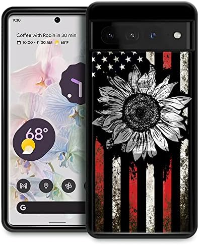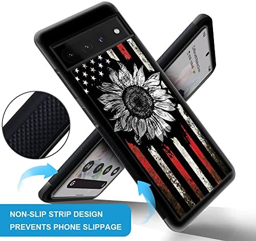 Compatible with Google Pixel 7 Case,Pattern Design Hard PC Back Cover Non-Slip Soft TPU Protective Case for Google Pixel 7 for Women 6.4inch-Retro Sunflower Flag
