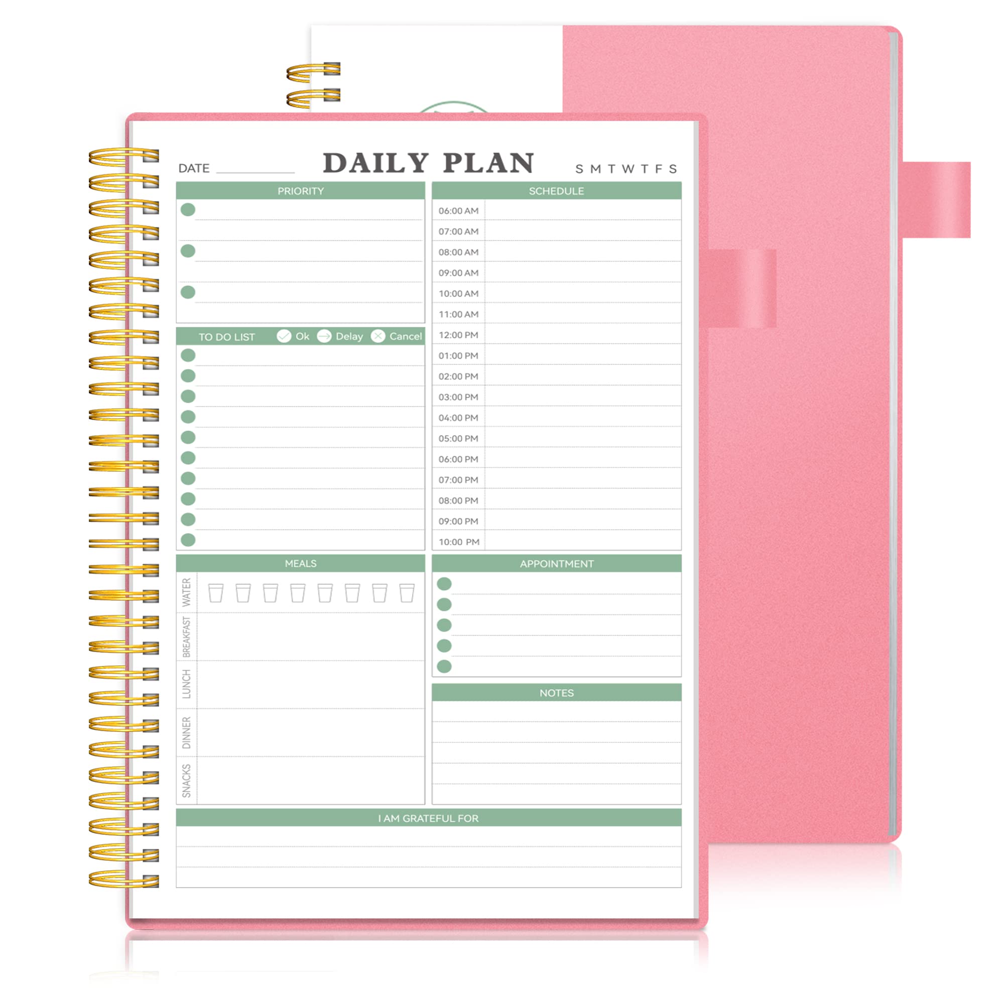 📒PERFECT SPIRAL TO DO LIST NOTEPAD: ALLTREE to-do list notebook provides plenty space for writing your important appointments and tasks, which can make your daily life organized and efficient. Spiral bound binding makes it easy to tear off the page you have used and start a new fresh day planning 📒FUNCTIONAL DESIGN: Undated design makes the to do list planner not only a notebook for daily plan & appointment but also a good choice for travel planner, meeting notebook, work planner, etc. It is the first choice for your office, study, life and fitness 📒MULTIPLE FUNCTIONS AND ACCESSORIES: ◆ Month & date recording(For easy reference, the top of each page features a banner with the year, months and 31 days so you can mark the date of each note's entry) ◆ Pen holder◆ Inner expandable pocket to to store small objects such as notes, receipts, etc.◆ Card inserts 📒PREMIUM MATERIAL: The to do list notebook uses high-quality acid-free 100gsm paper, which is thicker and no need to worry about ink leakage. Each planner is padded with a flexible cover, backing for durability and twin-wire spiral binding for easy recording and viewing. The to do notebook can bring you a better writing experience 📒GOOD AFTER-SERVICE: If you have any questions after receiving the undated to do list planner, please contact us and we will be happy to solve your problems as soon as possible