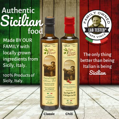 Papa Vince Olive Oil, Cold Pressed Polyphenol Rich Organic Extra Virgin Olive Oil, Fresh, Early Harvest, Vitamin Rich EVOO, Unfiltered, Unrefined, Raw, Amazing Taste, 2-Pack (Classic & Chili Oil)