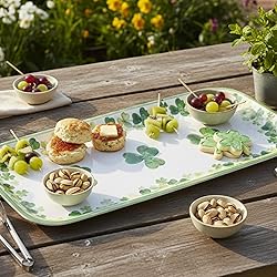 UPware Shamrock Melamine Serving Tray, 15 x 6.5 Inch Rectangular Serving Platter, BPA Free Food Tray for Party Entertaining