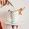 - DESIGN: This mug is brightly colored. The gingerbread man in the santa hat is the handle of the cup, cute and funny. The special colorful dots on the mugs add to the Christmas atmosphere. The spoon is curved at one end and can be hung on the rim of the cup, which is convenient and cute.