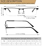 [Blue Light Blocking Reading Glasses for Men] : anti blue light and UV400 lenses can filter most of harmful blue light and UV400.great for office workers or anyone who has to look at screen all day,these glasses can block harmful blue light,reduce eye strain / tired,and protect your vision . [Designer Mens Readers] : our reading glasses are superbly crafted,sturdy metal frame durable and do not fade.we use high quality plastic temple and acrylic lenses.classic rectangular half frame design is perfect for men.metal frame reading glasses with spring hinge ensure comfortable fit without pinching face.stylish design let you look much younger.excellent gifts for men. [4 Pack Man Metal Frame Readers] : great value 4 pack Metal Frame reading glasses with two different colors ,suitable for any occasions.leave one at home, at work,in your car's glove box,or in your purse,backpack,or carry all to have handy when and where you need them. [Professional & Clear]: Professional and accurate degree configuration with clear lenses.let you have a clear vision and a colorful world.Well blue light readers provide all day protection.No worry eye fatigue and headache,let you have a better sleep. [Worry-Free Shopping]: Customer satisfaction is our utmost priority,and we are committed to providing a worry-free shopping experience.If you have any questions or In case of any broken problem happens,please do not hesitate to contact until you are satisfied!