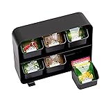 - Transform Your Space into a Luxurious Beverage Station Elevate your beverage experience with our ultimate coffee and tea station. This versatile set of organizers includes a 7-compartment organizer capable of holding cups, creamers, single-serve pods, and sugar, alongside a 6-drawer tea bag organizer that can accommodate up to 90 tea bags. With this dynamic duo, any end table or small countertop can be transformed into a fun, functional coffee and tea serving station. The tiered shelves of the coffee cup and condiment organizer, coupled with the open design of the tea bag organizer, ensure all your condiments and flavors are easily visible. Paired with a coffee maker or kettle, this set becomes a portable coffee station, perfect for a business lobby, welcome desk, or vacation rental. Treat yourself to a lavish beverage station at home. These organizers adapt to your needs throughout the year, housing syrups and straws for iced coffee in warmer months and transitioning to hold insulated cups and hot cocoa when the temperature drops. Whether as a thoughtful gift for Mother’s or Father’s Day, a housewarming, or for someone launching a new business, this beverage organizer set adds warmth and welcome to any setting.