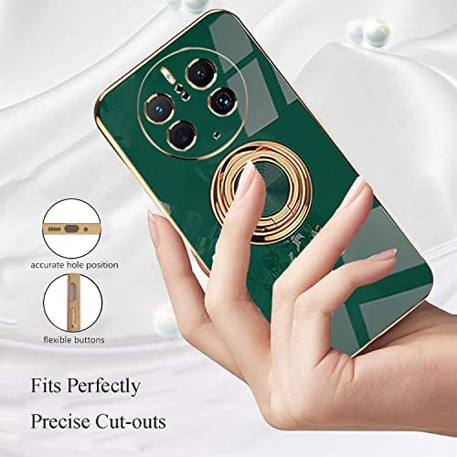 Phone Case for Huawei Mate 50 Pro with Ring Holder Gold, 360° Rotatable Kickstand for Huawei Mate 50 Pro Case Silicone Soft Slim Cover Aesthetic (Dark Green)
