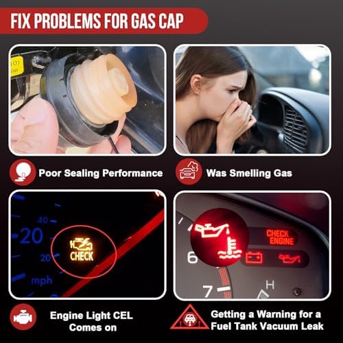 - 【Damage Condition】Loose and cracked Fuel Caps, engine light CEL comes on, gasoline or diesel vapor smells, car smokes or makes unusual noises, etc. If the above situation occurs, please check the Fuel Tank Cap immediately for damage and replace the new Gas Cap Cover