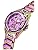 This new take on a classic style has a cutting-edge design with all over cut-thru details from the case to the bracelet as well as integrated on the dial design where you can see thru to the movement of this multi-function watch. Bringing bling elements to a new level with case and bracelet adornment and glitz powder on the dial to give an overall look of luxury.