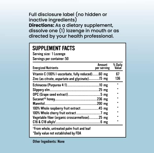 - More than just a zinc supplement! Combines synergistic immune supportive nutrients & herbs for ultimate support. such as Echinacea, Slippery Elm, OPC, Vitamin C, Sucanat Honey.