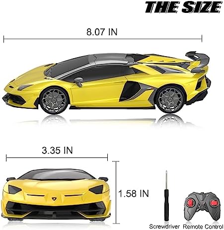 - 【Lamborghini RC CAR (Officially Licensed)】The car is real imitation 1/24 Lamborghini SVJ Roadster rc car, we were really focus on every detail for making the replica of it.There is an official anti-counterfeiting label on the package of each remote control car. It is made of durable, lightweight materials and odorless spray paint, injection-molded body, strong and sturdy components to bring you an excellent racing experience.